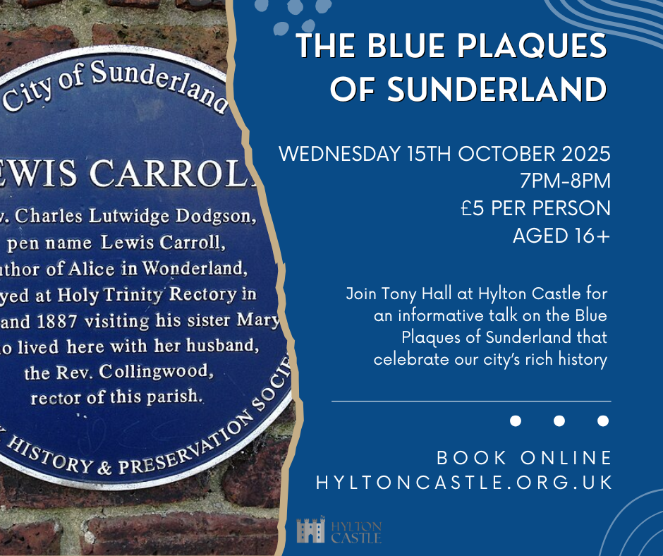 Join Tony Hall at Hylton Castle for an informative talk on the Blue Plaques of Sunderland that celebrate our city’s rich history. With over 70 Blue Plaques spread out across Sunderland to tell you about, Tony's talk will go through buildings, places of interest and influential people with connections to our great city!