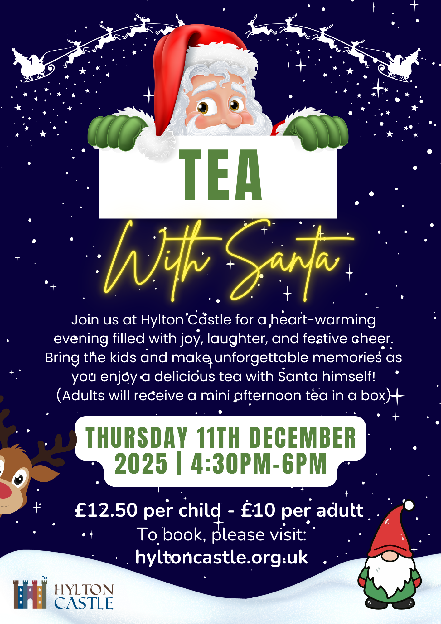 This year at Hylton Castle, Santa is trying something new! Join us for Christmas arts & crafts and enjoy a delicious festive evening tea! (Adults will receive a mini afternoon tea in a box)